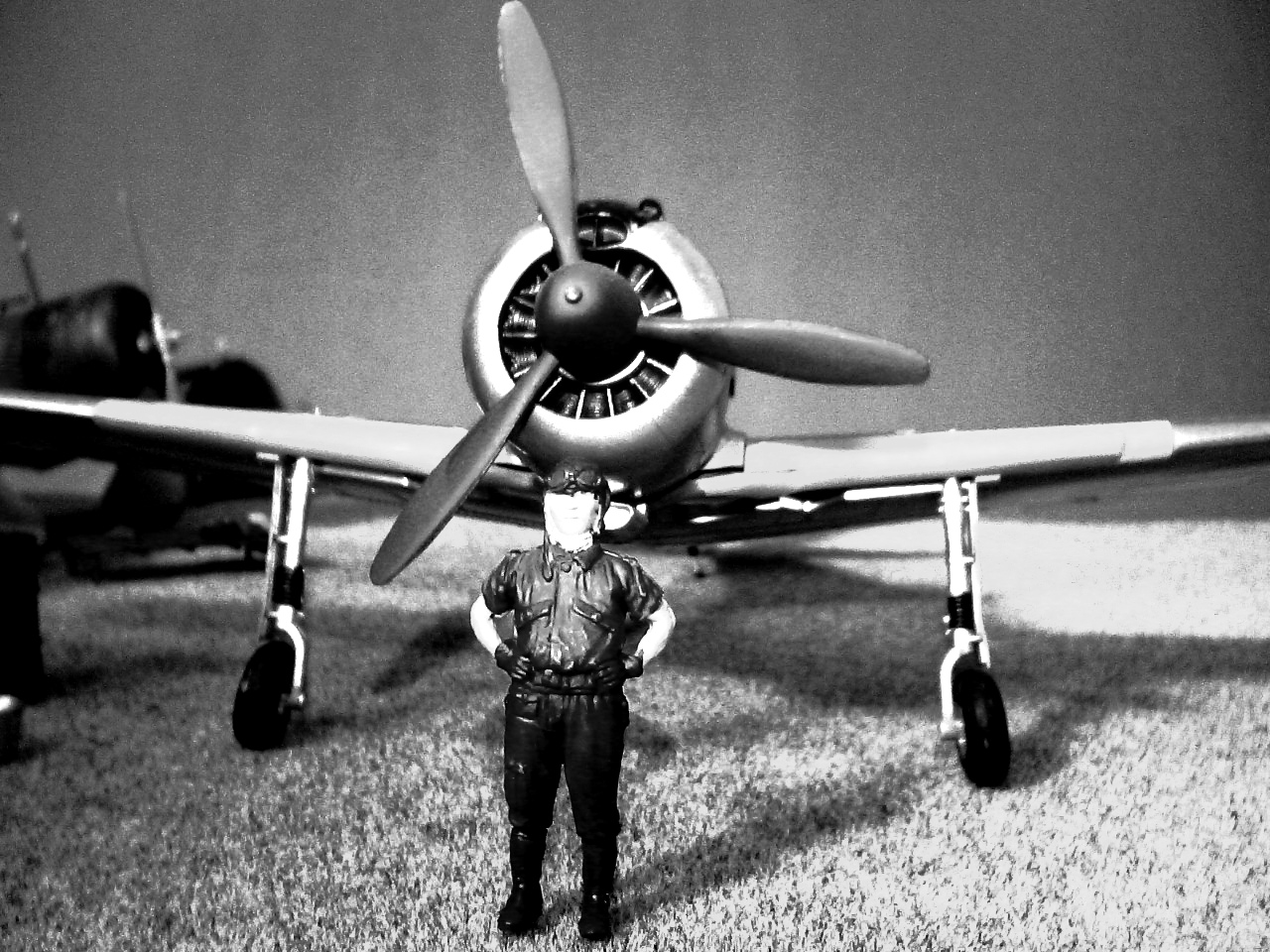 この角度だと見えないけどちゃんと主翼には五色旗の国籍標識が書かれていて、プラモ本体の解説は・・・・・正直忘れたな・・・・、ただ胴体と主翼のかみ合わせがえらく悪かったのだけは覚えてる(ほら、モノクロのほうをよく見ると隙間が)