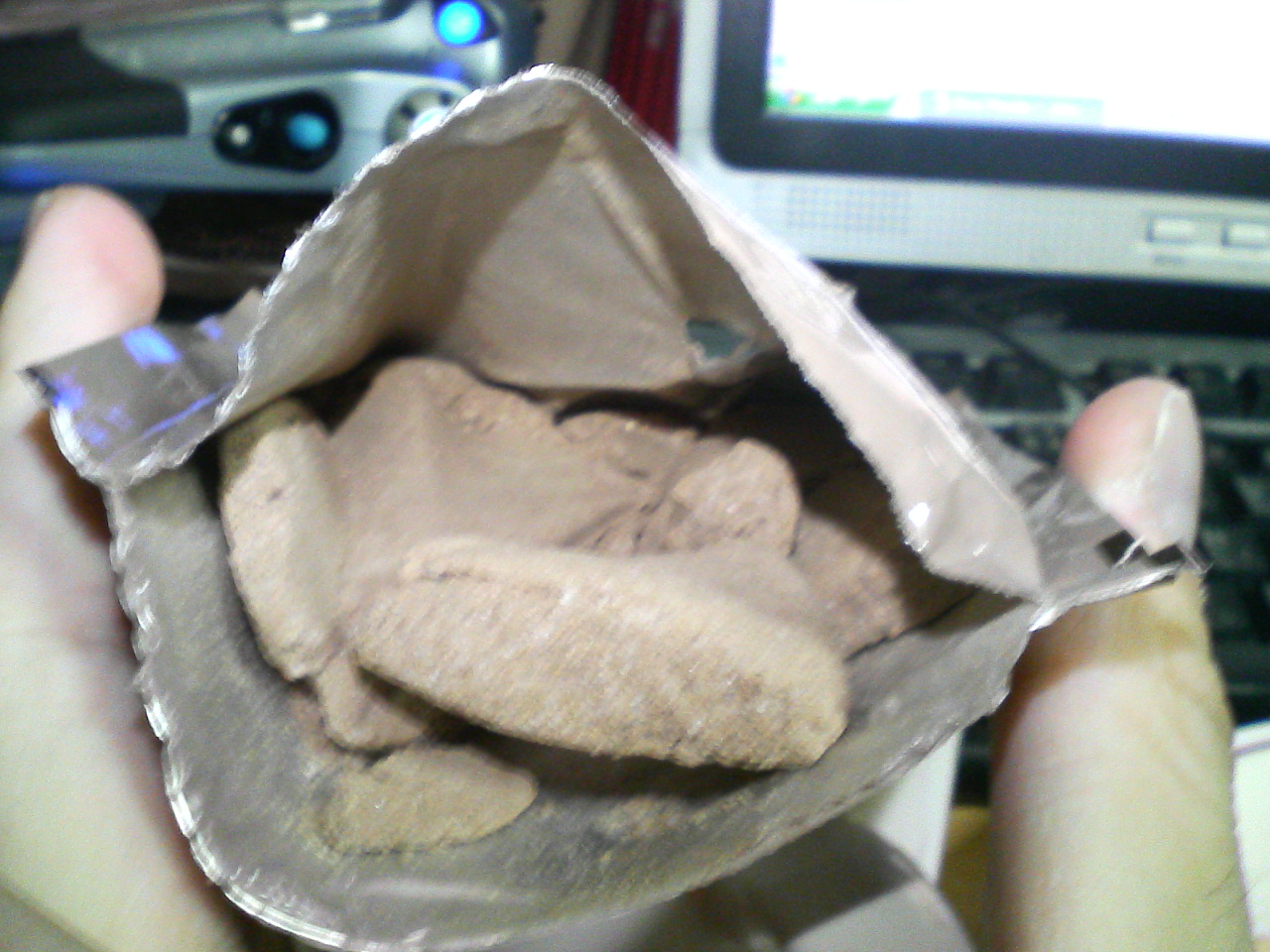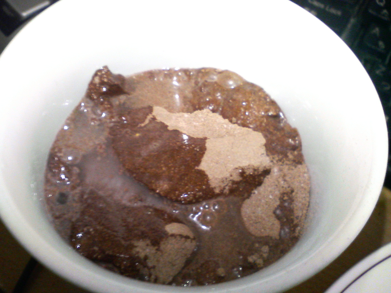 なんの粉だろ?恐る恐る舐めたところココア味ですがやけに量が多いです。
