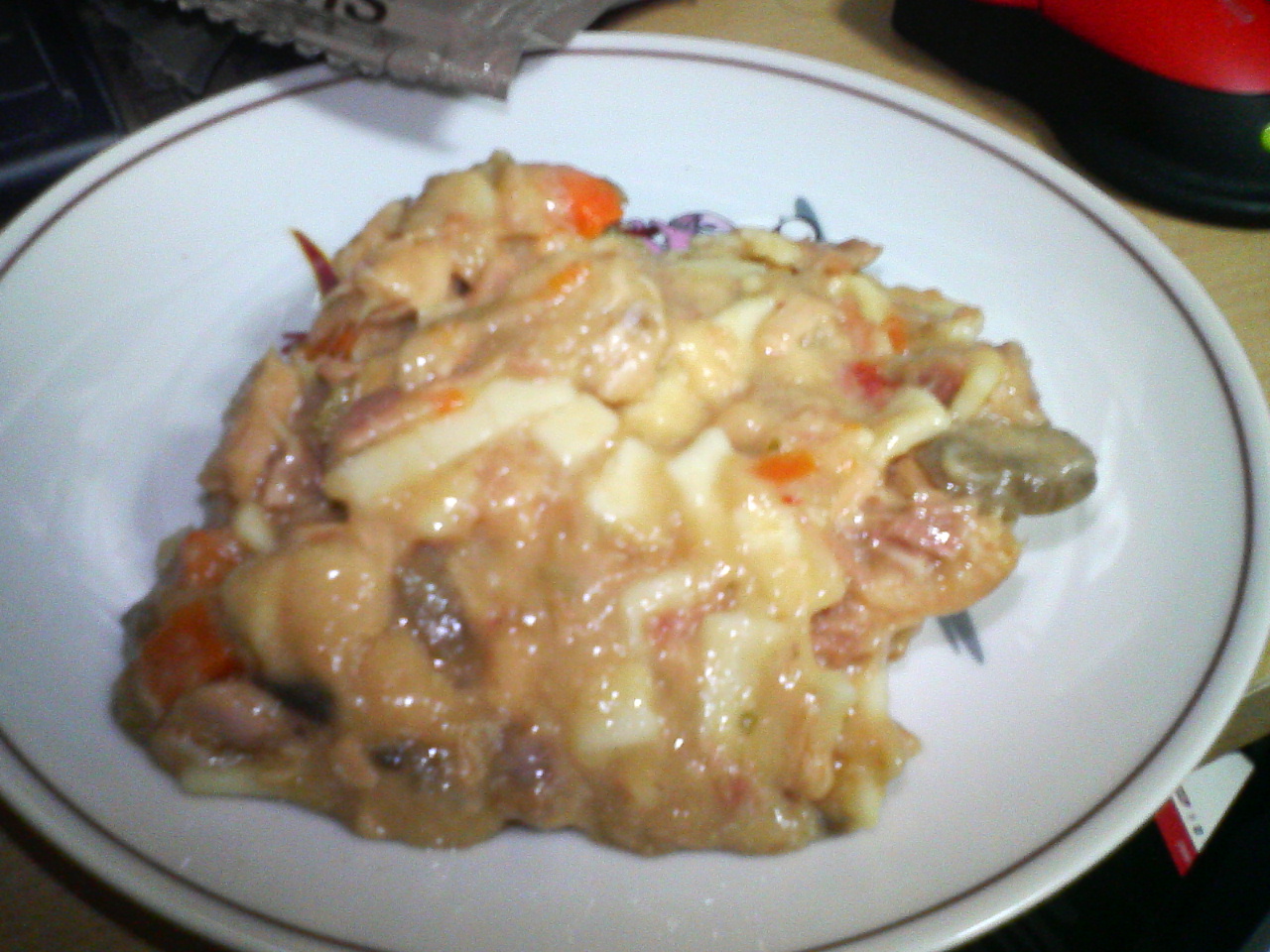 文章で書くとおいしそうですがファーストコンタクトで2度目の戦慄を覚えるほど濃ゆい味です。煮詰めてるせいか味が出来損ないのジャムみたく甘味を通り越して渋味に差し掛かっていてインパクトはチキンヌードルより2ランク上です。