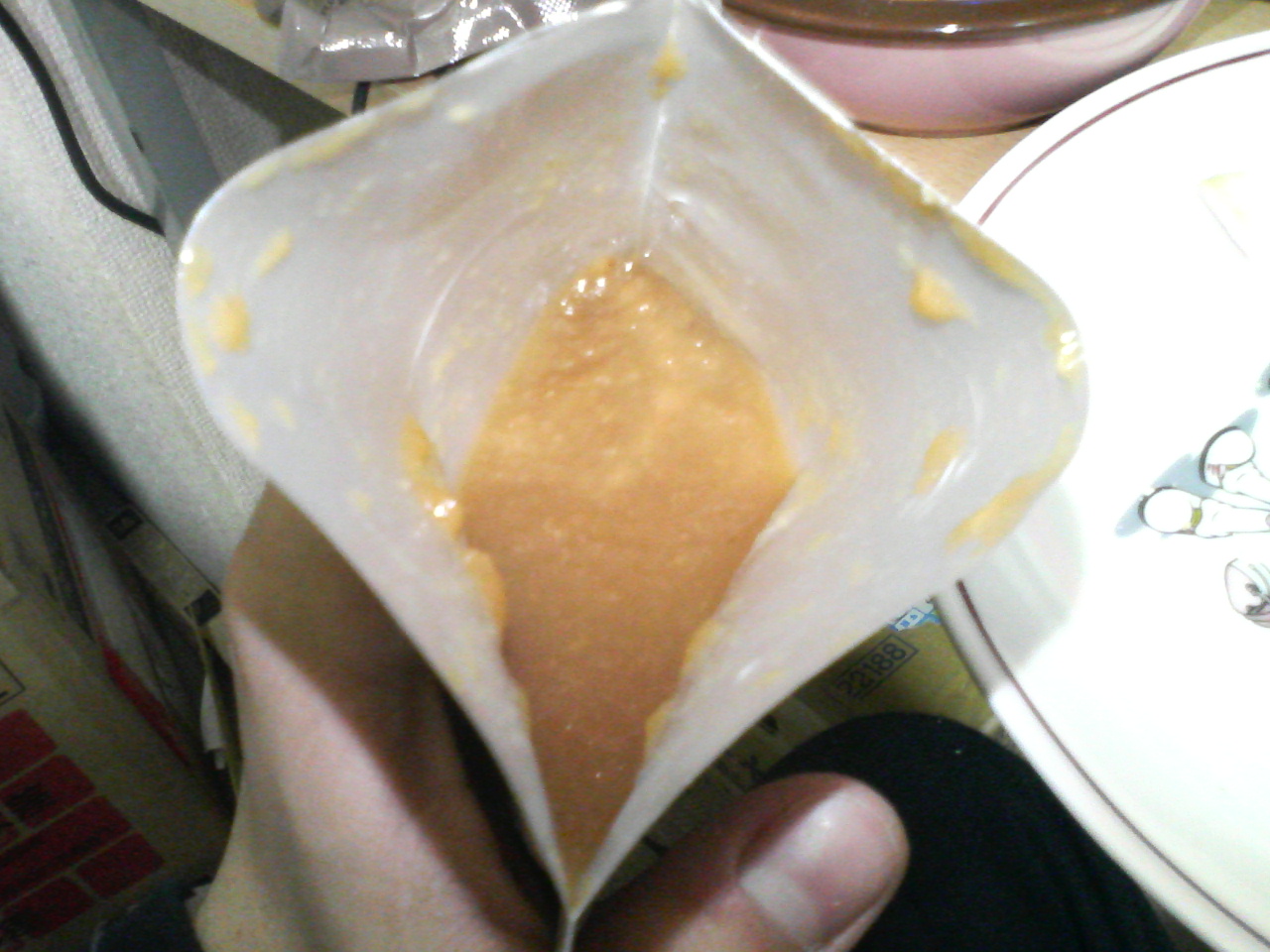 マジで一瞬戦慄が走りましたが臭い&味からりんごを煮てグチャグチャにしたものではないか?との結論にいたりました。